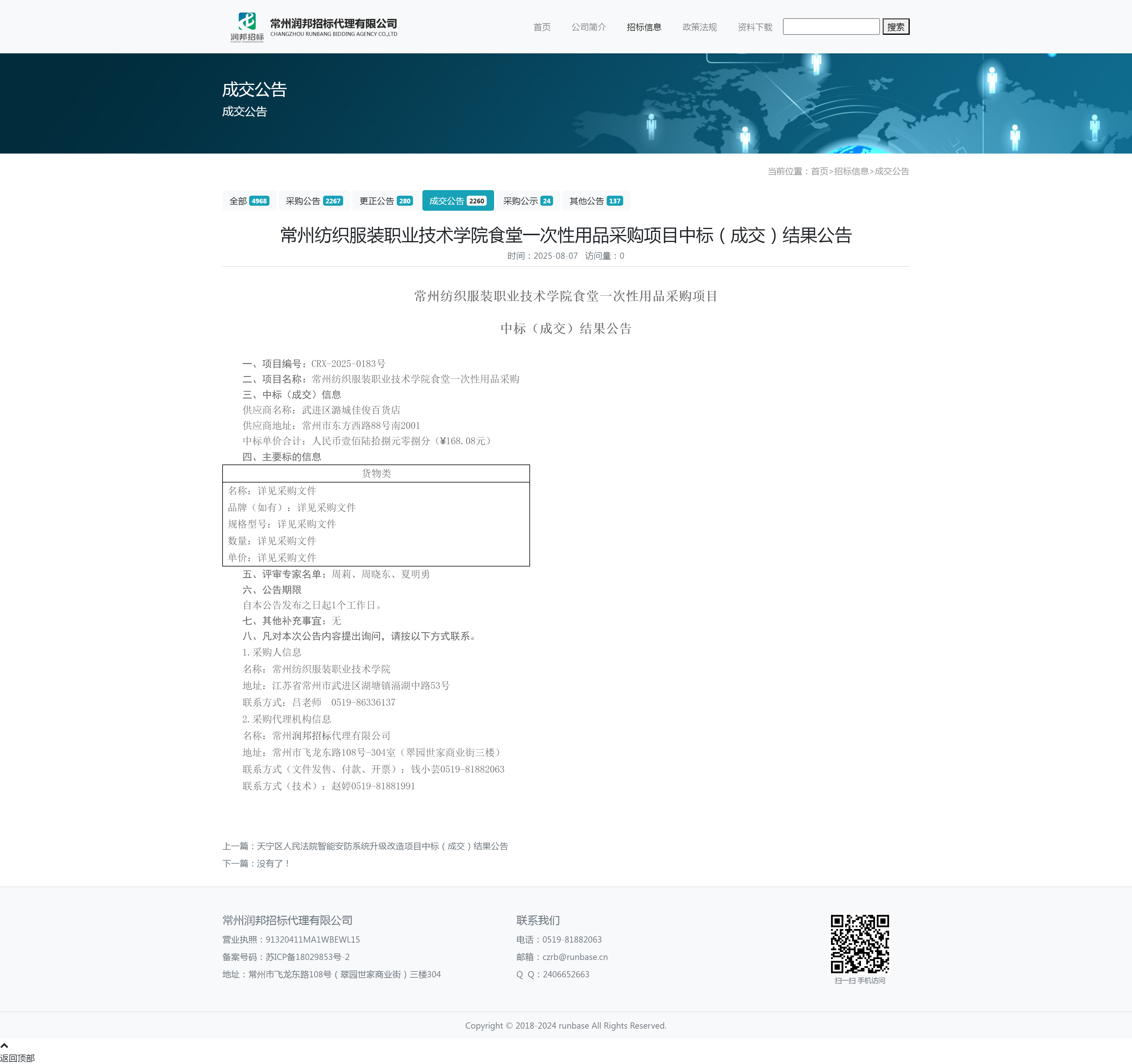 【成交公告】食堂一次性用品采购项目成交结果公告