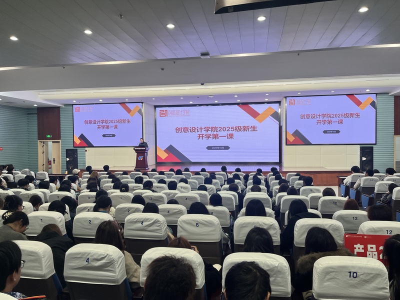为帮助新生更好地了解创意设计学院的专业特色,韩老师特别展示了各专业优秀毕业设计作品与实践成果。她指着作品介绍道:“这里是设计师的摇篮、创业者的实验室、自主管理的训练场。”她鼓励新生以这些优秀作品为目标,在大学三年中主动摄取专业“养分”,将校园资源转化为自身成长的“加油站”,同时呼吁大家认同学院平台,为自己的选择鼓掌,为未来的专业学习注入信心。