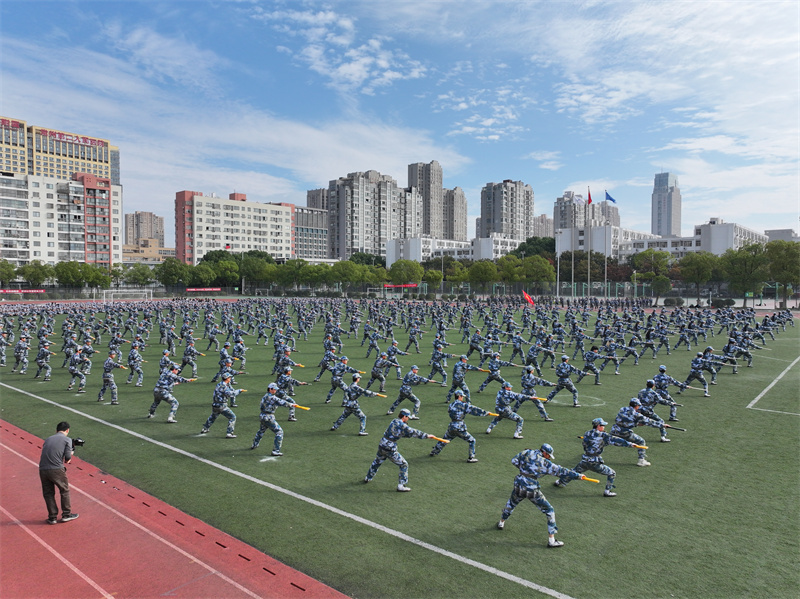 庄严的国歌声奏响了大会的序章。在激昂的《中国人民解放军进行曲》中,军训各方队依次走过主席台。他们步伐铿锵,动作整齐划一,队列行进有序,充分展现了为期两周军事训练的扎实成效与新时代青年学子昂扬向上的精神风貌。